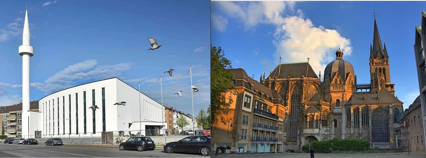 Il muezzin è di casa a Aquisgrana, la città di Carlo Magno e della sua meravigliosa cattedrale e che oggi ha dodici moschee. La città sta anche cambiando nome alle piazze per fare spazio all’Islam. Moscheeplatz è il nuovo nome di una piazza voluto dal sindaco della CDU di Merkel, Marcel Philipp, in accordo con il Ditib, l’organizzazione turco-tedesca che fa capo a Erdogan: “Sono molto felice come sindaco di avere una Piazza della Moschea”.