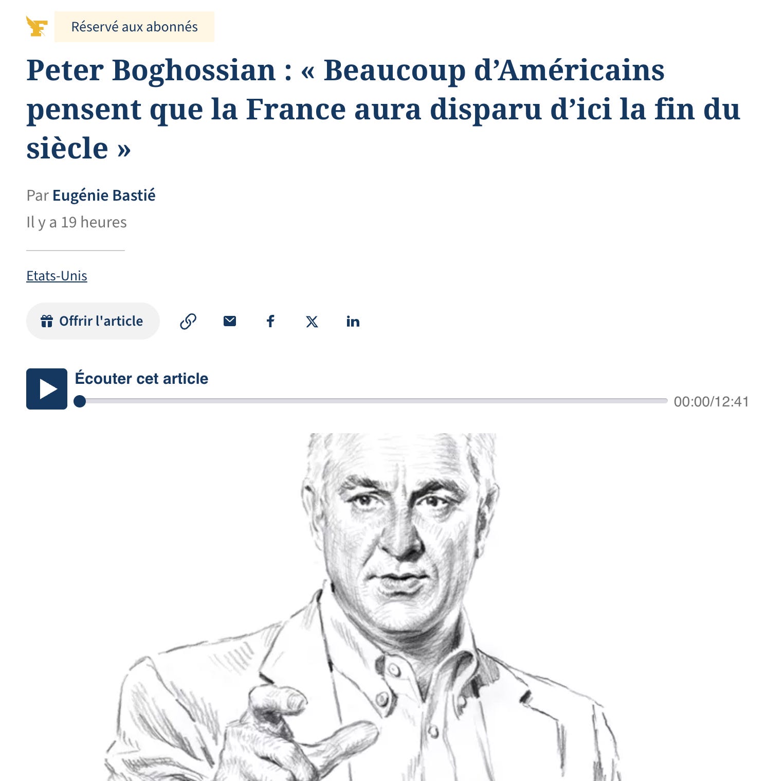 “Prima di venire in Francia, ero a una cena e, quando ho detto che sarei venuto qui, diverse persone hanno risposto: ‘Perché lo fai? Non importa. Non andate. La Francia è perduta’. Penso che molti americani, dal centro alla destra, non credano che la Francia esisterà ancora alla fine del secolo. Se una società non vuole lottare per ciò che considera importante, allora merita ciò che le succede. Possiamo fare qualche esperimento mentale. Immaginate che tutti gli abitanti dell’Uganda si stabiliscano in Belgio: il Belgio sarà lo stesso tra cinquant’anni? No. Okay. Ora immaginate che tutti gli svedesi, tranne quelli di Malmö, se ne vadano in Uganda e gli ugandesi stanno diventando una minoranza. Come sarà tra cinquant’anni? Sono domande legittime. Oltre l’1 per cento della popolazione francese è composto da immigrati clandestini. Questo rappresenta 700.000 persone. Non avete idea di chi siano queste persone. È completamente folle. È un suicidio culturale. Il professore universitario Gad Saad lo chiama ‘empatia suicida’. La negazione è immensa. Ecco perché molti americani pensano che siate spacciati”.