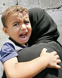 Un titolo già indicativo della falsità di tutto l'articolo. Accanto al titolo, un'immagine che più taroccata non potrebbe essere, "un bambino palestinese inginocchiato con la bandiera palestinese", come recita la didascalia. In posa per il fotografo, come aggiungiamo noi, e come direbbe qualunque persona che abbia un minimo di competenza su quanto avviene negli studi fotografici di Beirut.