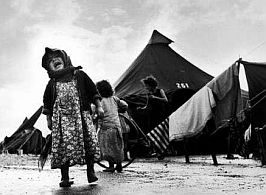 nella foto a destra, bambina ebrea in un campo appena arrivata dall'Iraq nel 1950