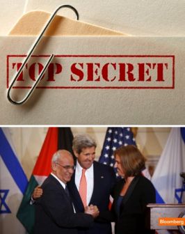 a destra, Saeb Erekat, John Kerry, Tzipi Livni