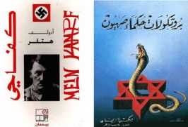 A destra, edizioni arabe del "Mein Kampf" di Hitler e del falso antisemita " I Protocolli dei Savi Anziani di Sion", bestseller nel mondo islamico.