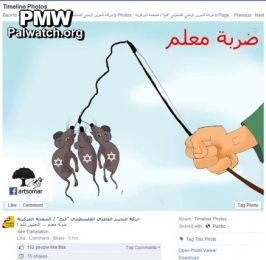 A destra, i tre ragazzi israeliani rapiti rappresentati come topi presi in trappola, sulla pagina Facebook di Fatah