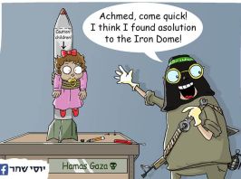 A destra: "Ahmed, vieni, svelto. Penso di aver trovato la soluzione per Iron Dome" sul missile: "Attenzione, bambino !"