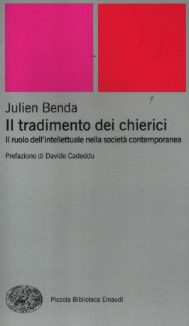 A destra: la copertina del libro di Julien Benda (Einaudi ed.)