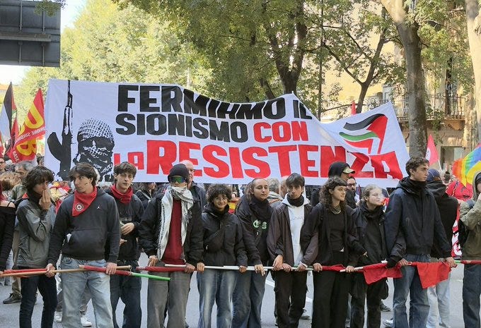 Evidentemente non si comprende la gravità del momento. Soltanto in Italia tutti i partiti dell’opposizione sono scesi in piazza dietro slogan e bandiere a favore del terrorismo. In Francia ci trovereste soltanto la sinistra radicale di Jean-Luc Mélenchon; in Germania non ci trovereste mai i Socialdemocratici (forse neanche la Linke) o in Inghilterra il Labour post-Corbyn (al massimo Mothin Ali, il fanatico islamico appena eletto vice dei Verdi britannici).
