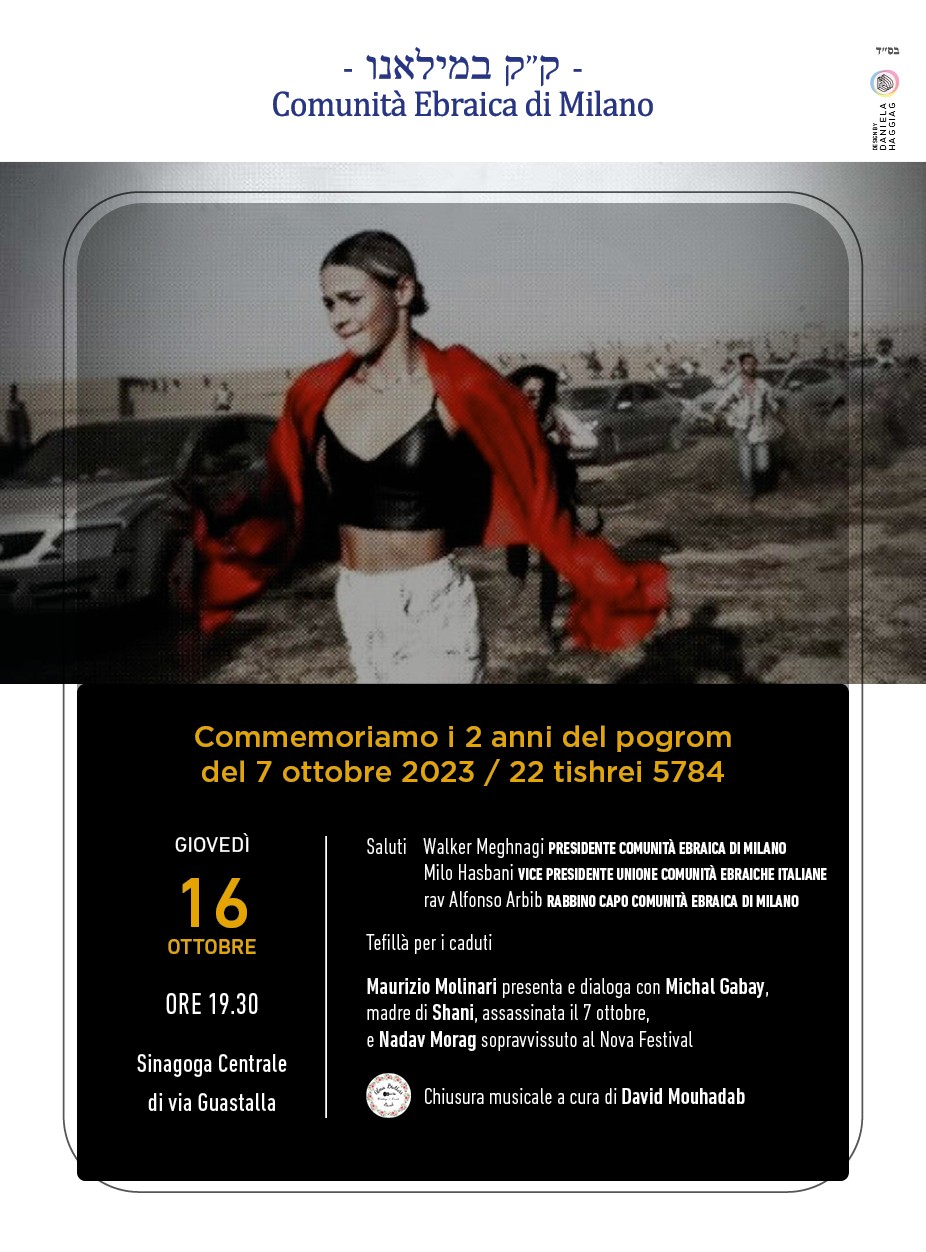 Oggi: Un ricordo del 7 ottobre alla Sinagoga Centrale di Milano
