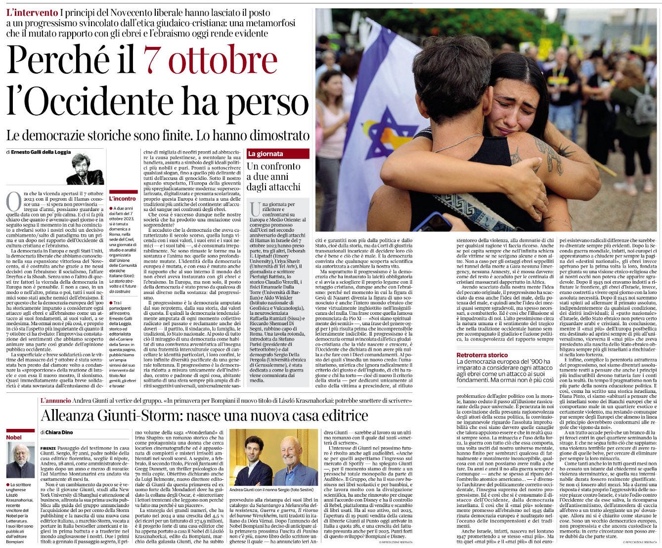 Ha ragione dunque Ernesto Galli della Loggia quando oggi scrive sul Corriere della Sera: “Il 7 ottobre l’Occidente ha perso. Le democrazie storiche sono finite”.