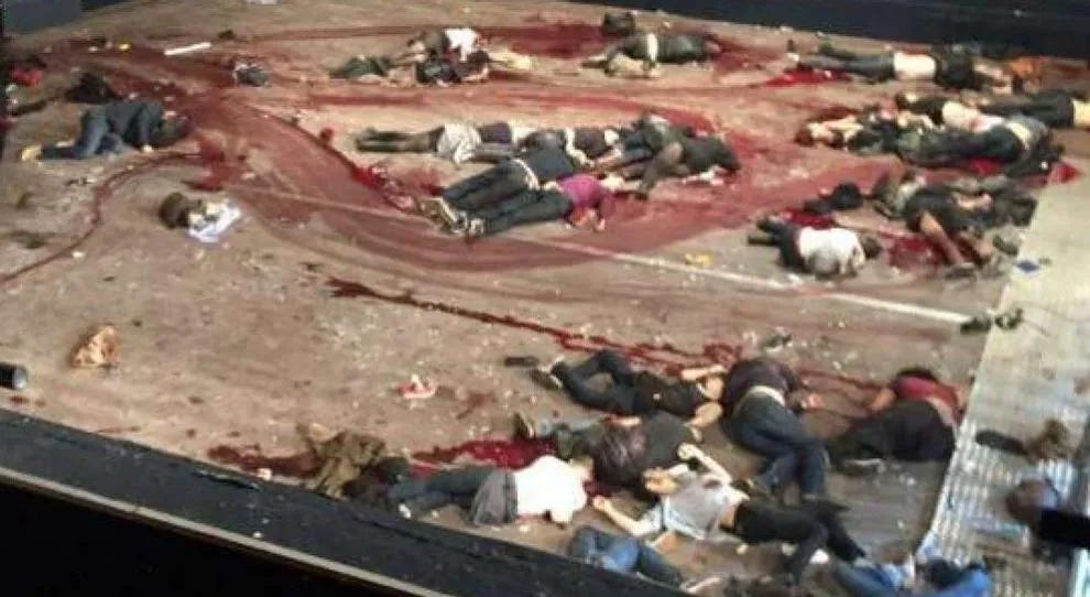 Un mare di sangue rosso senza vita. 90 morti in 32 minuti. 71 all’interno del Bataclan, 44 dei quali ai piedi del palco. Altri all’esterno.