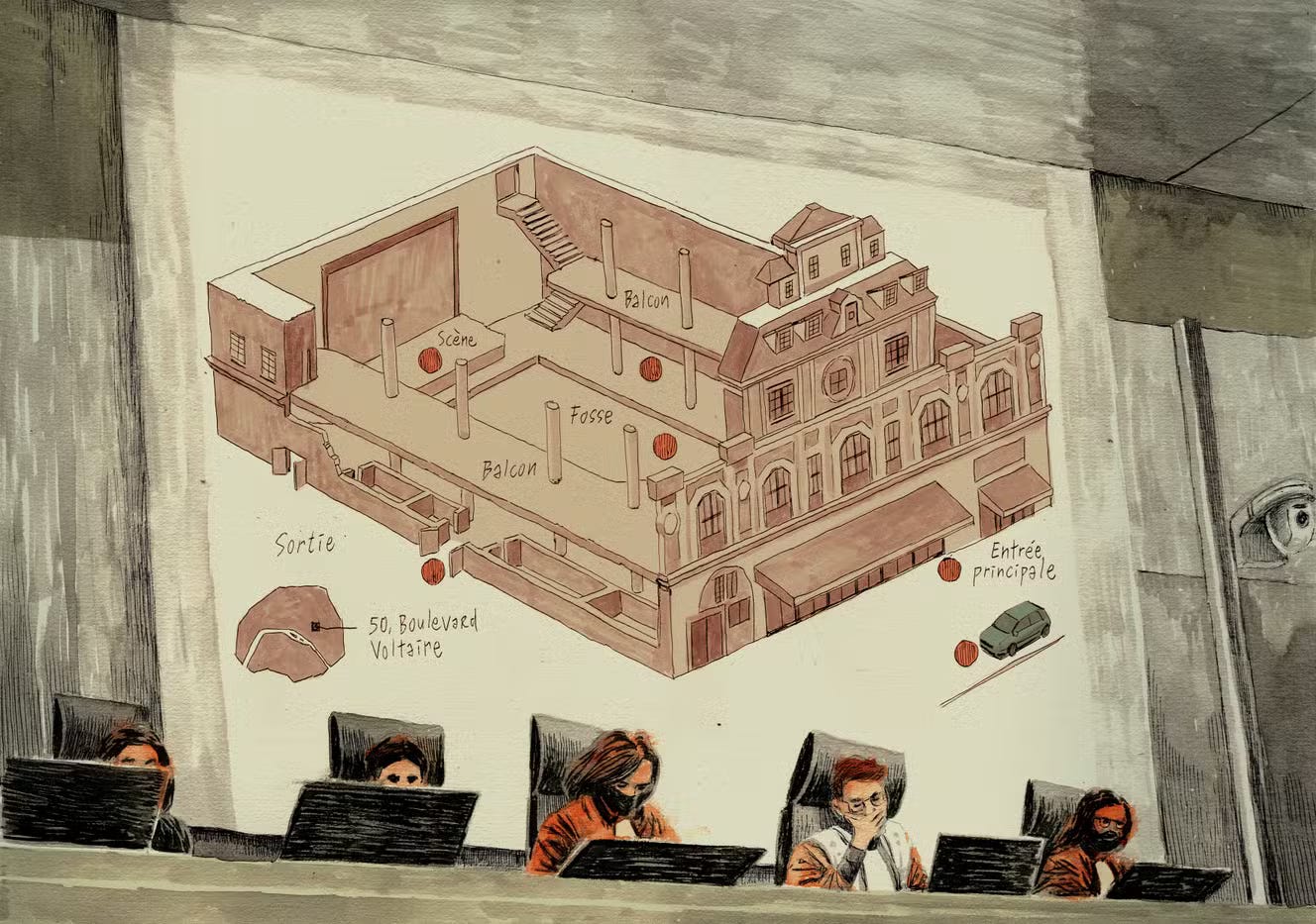 Sono le 22:15. La BRI (Brigata di Intervento Rapido) entra al Bataclan. “C’erano 500 o 600 persone a terra, nessun rumore, solo gemiti”, ricorda Jay, lo sguardo fisso nel vuoto. I riflettori del palco accesi inondano la stanza di una luce bianca e cruda. “L’immagine era surreale. È stata la prima scena che abbiamo visto”. Poi Kader: “È atroce. È una fossa comune. L’immagine che avevo era quella di una scena di guerra. Come quelle che si vedono in TV o nei libri di storia. Ho pensato all’Olocausto... Tutti quei corpi ammucchiati uno sopra l’altro”.