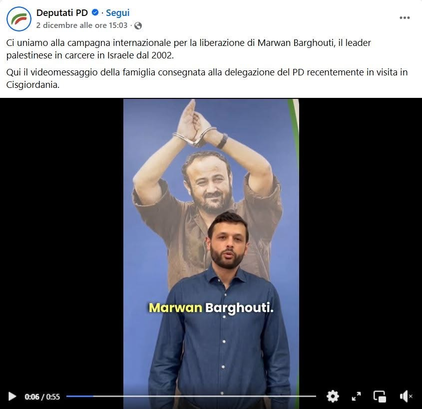 PD che ha appena lanciato una campagna per la liberazione di Marwan Barghouti, il capo della Seconda Intifada, condannato a cinque ergastoli per l’omicidio di ebrei e cristiani.