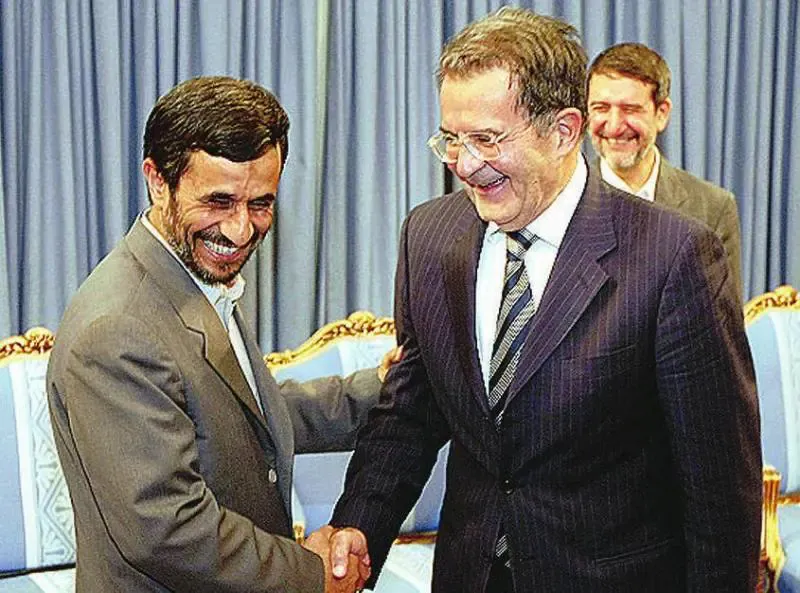 Mahmoud Ahmadinejad (ex presidente fanatico iraniano che voleva distruggere Israele) con Romano Prodi, allora premier.