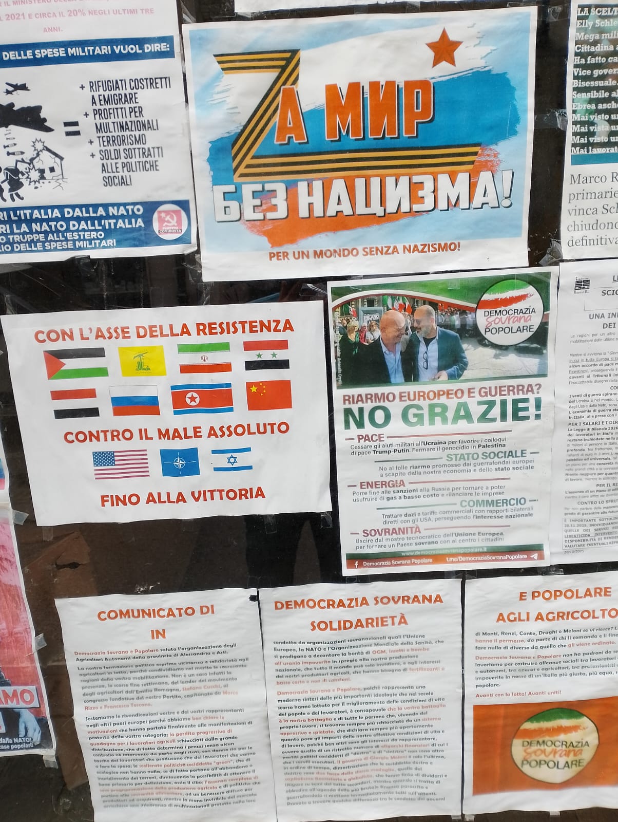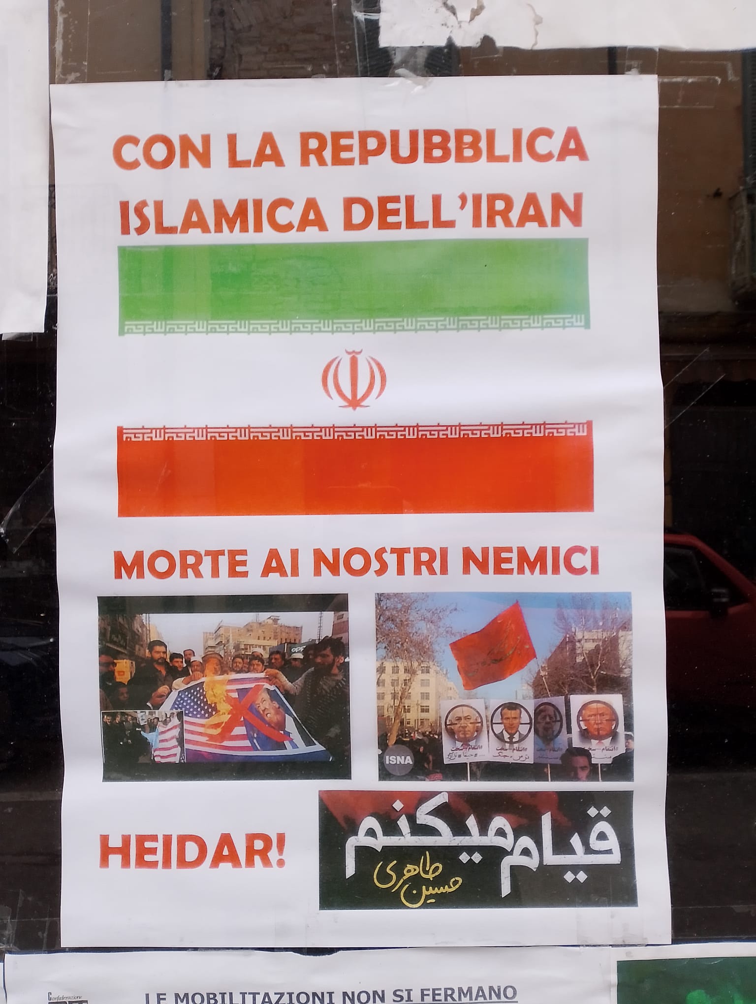 se quei cartelli sono di Democrazia Sovrana e Popolare sono molto delusa perché finora avevo considerato Marco Rizzo persona intelligente. Si, comunista, si filopalestinese, lontano anni luce dalle mie idee ma anche un "nemico" con il quale ragionare. Non lo credevo un fanatico! Evidentemente non riesce a controllare le sedi sparse per l'Italia oppure il suo odio per Gli Stati Uniti e Israele supera e ottenebra la sua intelligenza. Non credo che la redazione possa riprodurre le foto nella sezione lettere ma sono terrificanti. Quella che dice : "CON LA REPUBBLICA ISLAMICA MORTE AI NOSTRI NEMICI" che sovrasta le bandiere di USA e Israele e ha come bersaglio i volti di Trump e Netanyahu è davvero spaventosa. Si, siamo in democrazia ma fino a quando?