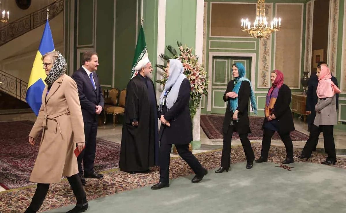 Guidata dal primo ministro svedese socialdemocratico Stefan Löfven e dal ministro del Commercio Anna Linde, la delegazione comprendeva undici donne. Indossavano tutte il velo islamico tutto il tempo mentre erano in Iran, pur fiere della propria aderenza ai valori della sinistra e si proclamassero “orgogliosamente femministe”.