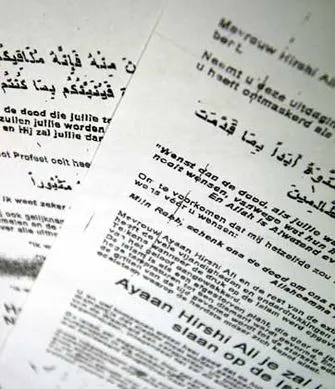 Ayaan Hirsi Ali è sotto stretta protezione della polizia dal 2004, quando un musulmano assassinò il regista Theo van Gogh, con il quale aveva girato il film di critica all'Islam Submission. L'assassino lasciò sul petto di Van Gogh una lettera indirizzata a Hirsi Ali. Ora Ayaan Hirsi Ali è presente in diverse liste di condanna a morte stilate da gruppi terroristici.