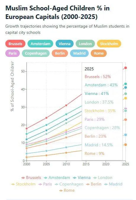 “L’Europa sta diventando islamica. Oltre la metà dei bambini di Bruxelles e il 40 per cento dei bambini di Amsterdam, Vienna e Londra sono musulmani. Si tratta di una statistica inimmaginabile con enormi implicazioni a livello globale e, naturalmente, drammatiche per noi, Israele. I politici sono sempre influenzati dall’opinione pubblica e, man mano che l'opinione pubblica dell'Europa occidentale diventa più musulmana, è chiaro che assisteremo a un aumento delle politiche anti-israeliane. Il mondo sta cambiando e noi dobbiamo essere pronti”.